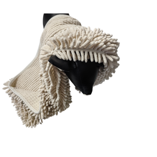 The details of Absorbent soft Microfiber Chenille pet bath towel with glove pocket design for quick drying