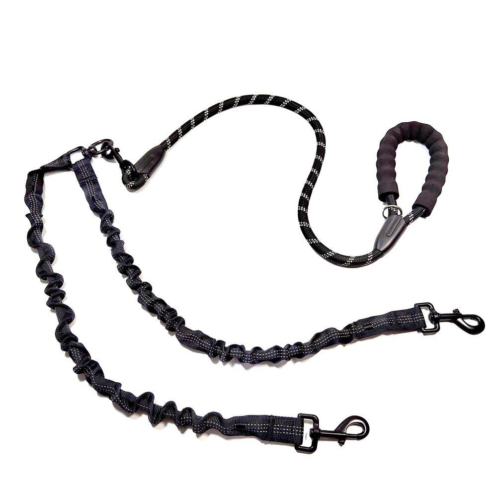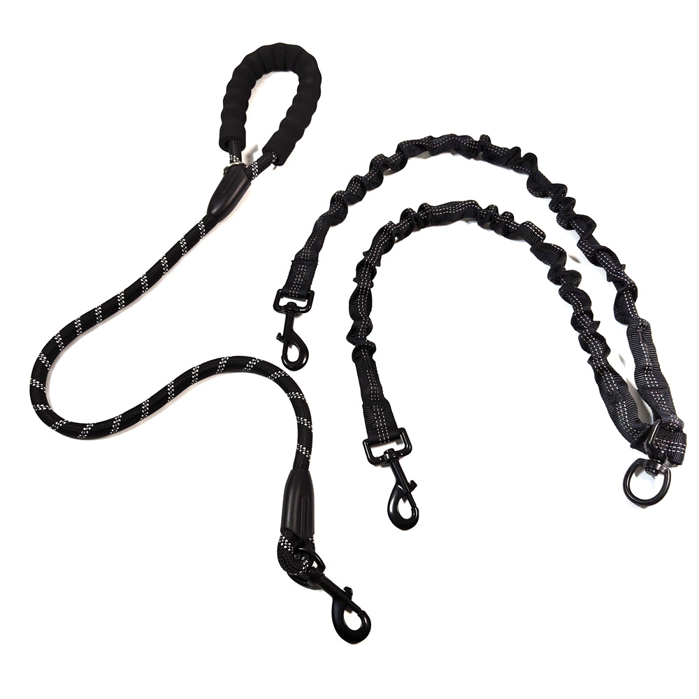 Anti-winding reflective buffer double hook dog leash